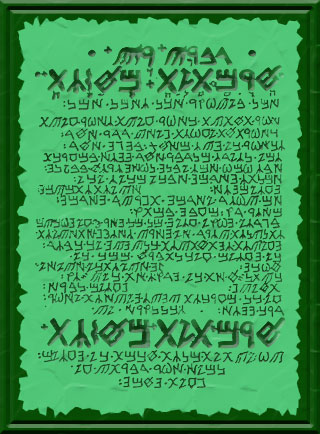 scenes from a mysterious green tablet - the Emerald Tablet. The Secret book